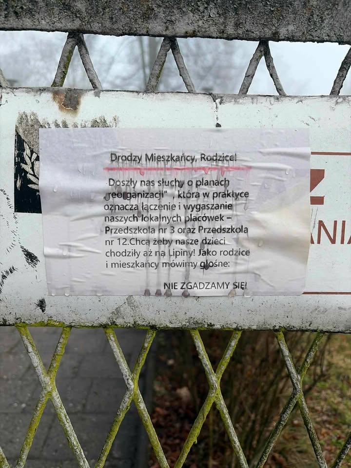 W odpowiedzi na pojawiające się informacje rozpoczęła się oddolna akcja protestacyjna. Na budynku przedszkola nr 3 zawisły plakaty i apel skierowany do rodziców. Zdjęcia dokumentujące działania rodziców trafiły do naszej redakcji. Jak ustaliliśmy, sprawą zainteresowali się również miejscy radni. Do władz miasta mają zostać skierowane oficjalne zapytania w tej sprawie. Na ten moment brak jednoznacznych decyzji ogłoszonych publicznie, a rodzice oczekują jasnych komunikatów i transparentnych działań ze strony władz. Pojawiają się już nawet spekulacje, że docelowe zamknięcie obu placówek może uwolnić bardzo atrakcyjny grunt, który w przyszłości może być wykorzystany np. pod budowę mieszkań.