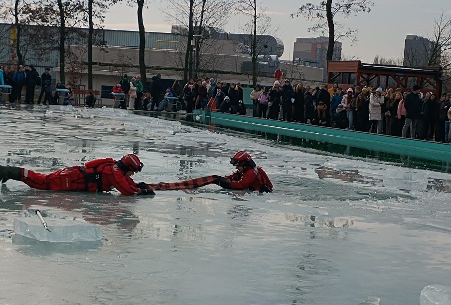 Głównym tematem prelekcji było bezpieczeństwo w pobliżu zamarzniętych zbiorników wodnych. Strażacy z Komendy Miejskiej PSP w Świętochłowicach zaprezentowali techniki ratowania osób, które znalazły się pod załamanym lodem, omawiając jednocześnie sprzęt wykorzystywany w ratownictwie wodno-lodowym. Uczniowie dowiedzieli się, jak postępować w przypadku zauważenia osoby tonącej oraz jak prawidłowo wzywać pomoc. Pokazom towarzyszyły praktyczne ćwiczenia, w tym rzut rzutką ratowniczą pod okiem ratowników WOPR, a także nauka pierwszej pomocy i resuscytacji krążeniowo-oddechowej na fantomach.