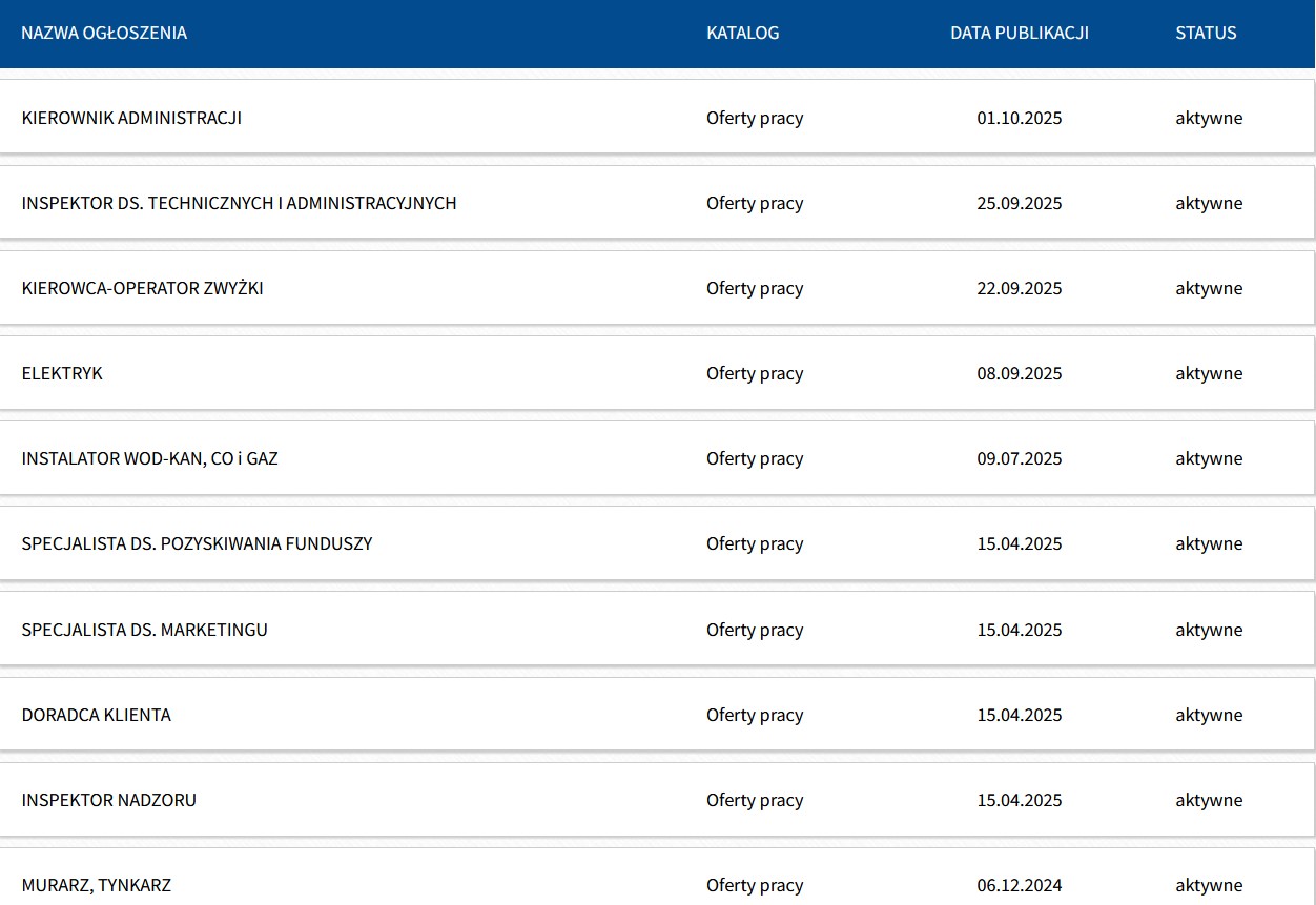 Miejskie Przedsiębiorstwo Gospodarki Lokalowej w Świętochłowicach prowadzi aktualnie rekrutację na różne stanowiska. Na stronie spółki można znaleźć aż 10 aktywnych ofert pracy, obejmujących zarówno stanowiska techniczne, jak i administracyjne oraz specjalistyczne. To propozycja dla osób z różnym doświadczeniem i kwalifikacjami, które szukają zatrudnienia w lokalnej firmie komunalnej.