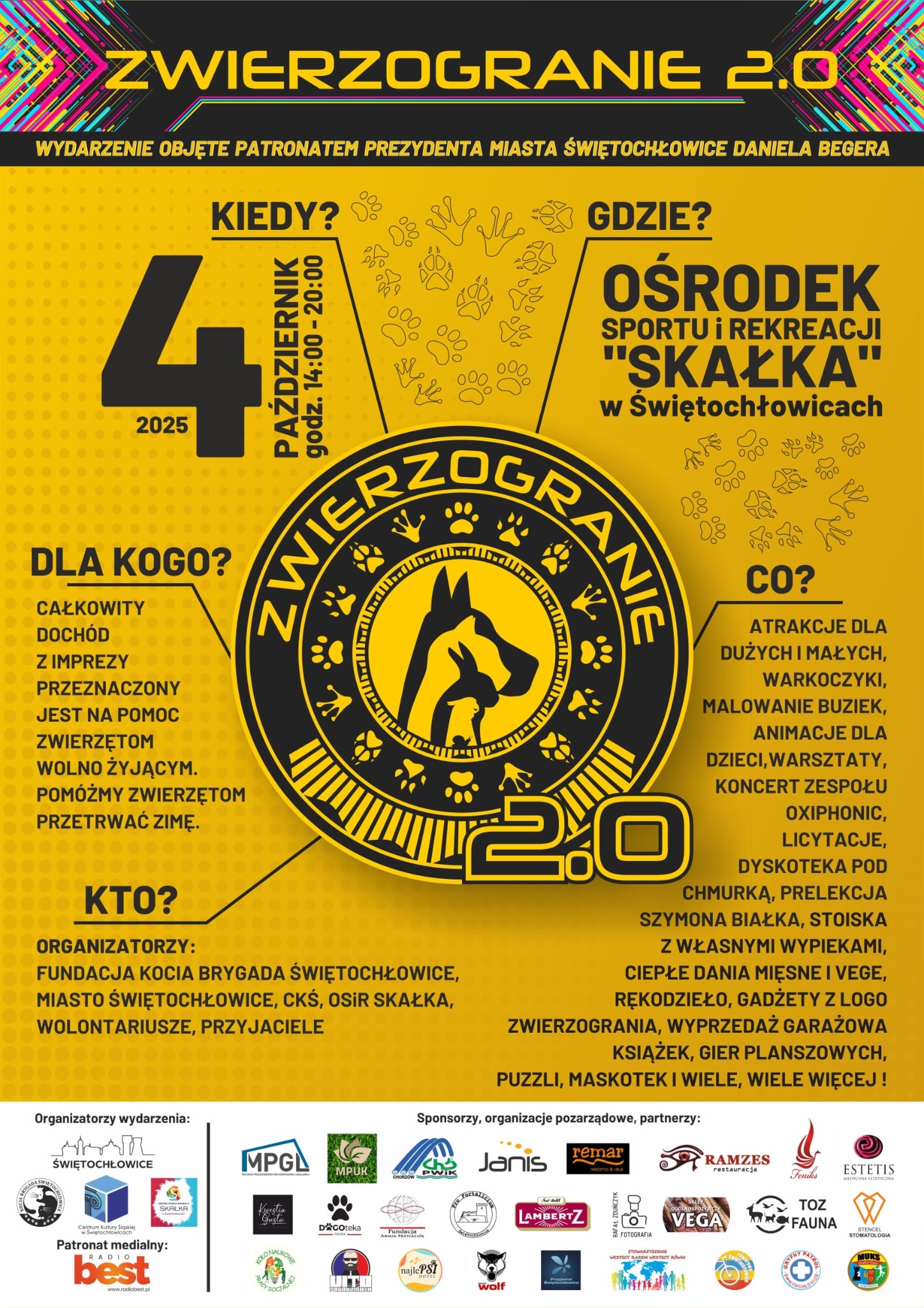 To kolejna edycja charytatywnego wydarzenia. “Zwierzogranie”, ma na celu pomoc zwierzętom wolno żyjącym. W programie dużo muzyki, na scenie wystąpi m.in. zespół Oxiphonic, a najmłodsi i młodzież pokażą swoje talenty w pokazach Dance Kids oraz występach artystycznych przygotowanych przez Młodzieżowy Dom Kultury w Świętochłowicach. Całość zakończy muzyczna dyskoteka z DJ-em, podczas której organizatorzy liczą na wspólną zabawę wszystkich pokoleń Nieodłącznym elementem Zwierzogrania są licytacje charytatywne, a cały dochód wspiera organizacje ratujące zwierzęta. Podczas imprezy będzie również prowadzona zbiórka karmy, koców i akcesoriów dla czworonogów – każdy, nawet najmniejszy dar, ma tu ogromne znaczenie.